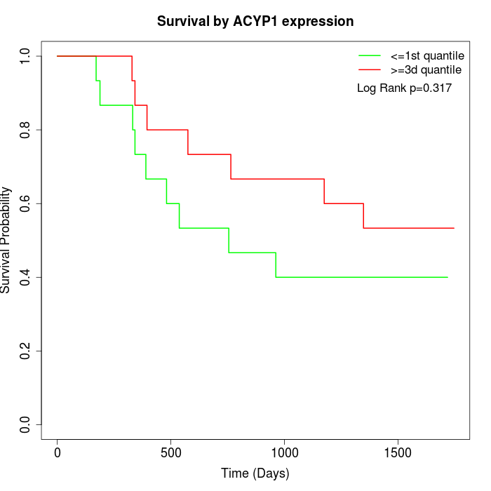 Survival by ACYP1 expression:
