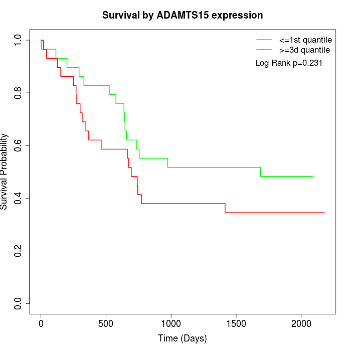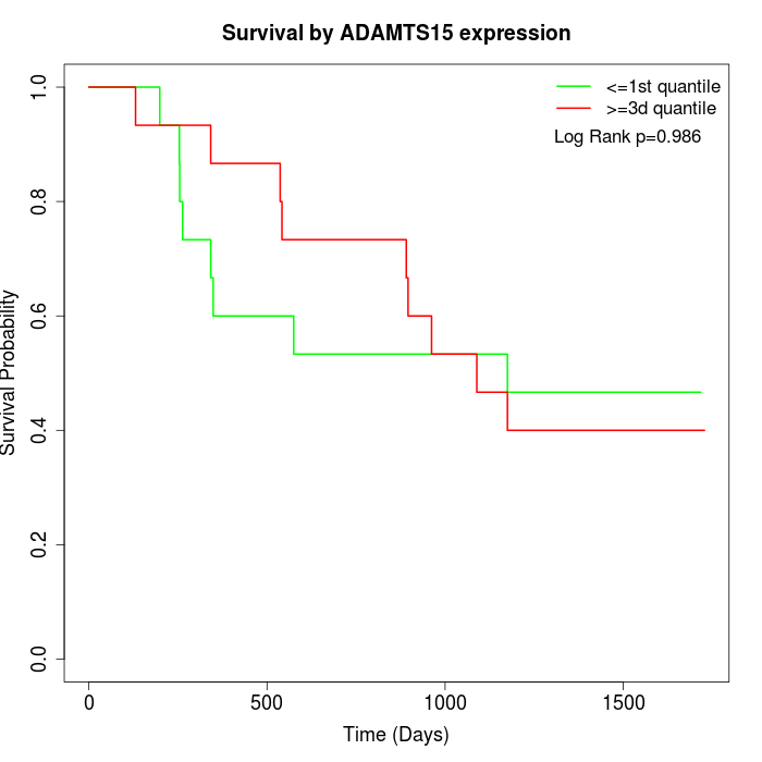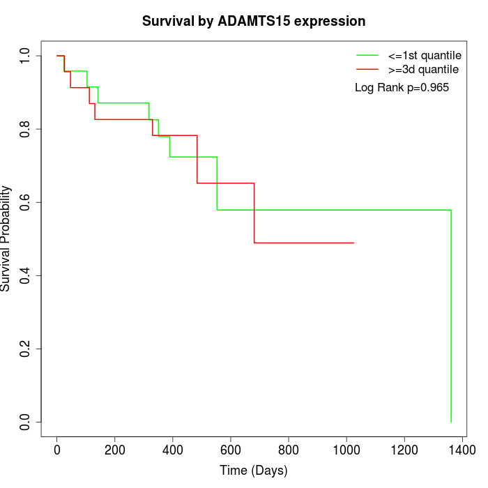 Survival by ADAMTS15 expression: