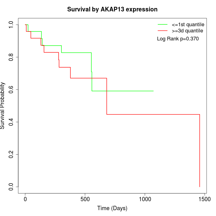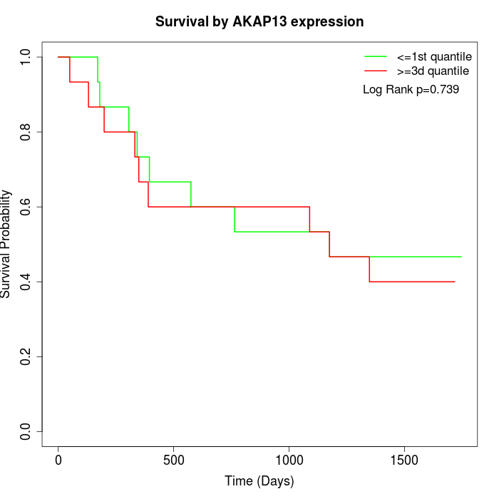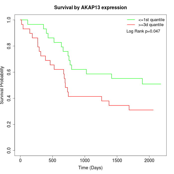 Survival by AKAP13 expression:
