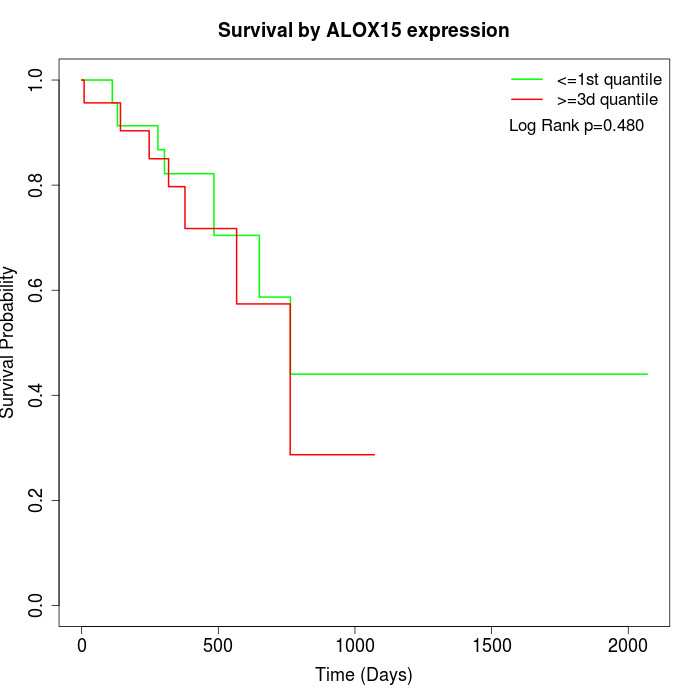 Survival by ALOX15 expression: