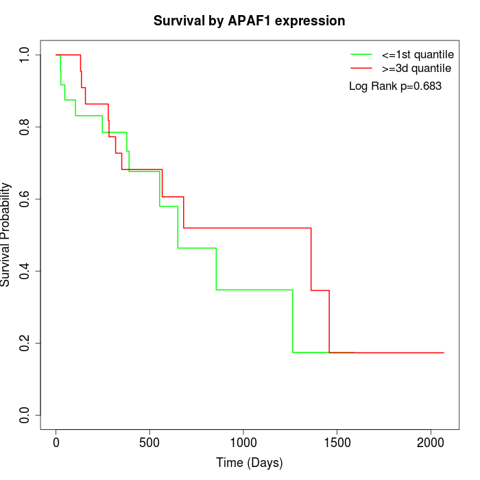 Survival by APAF1 expression: