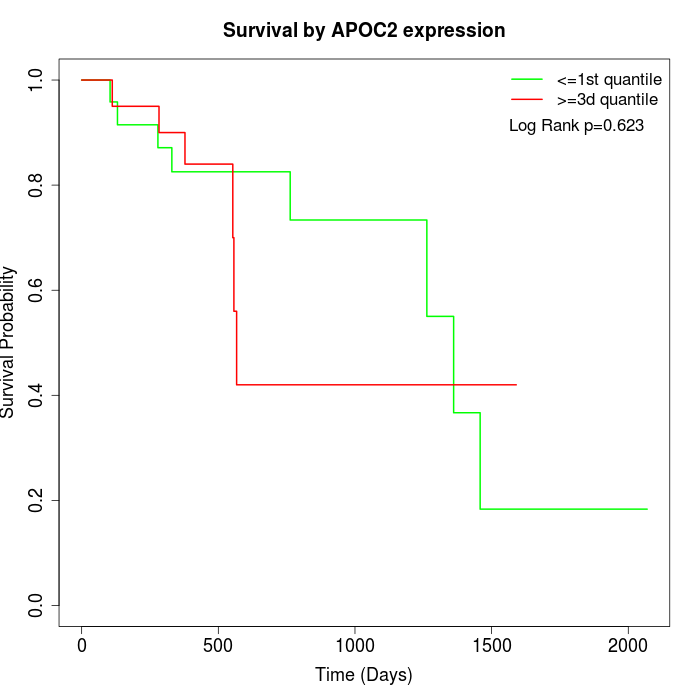 Survival by APOC2 expression:
