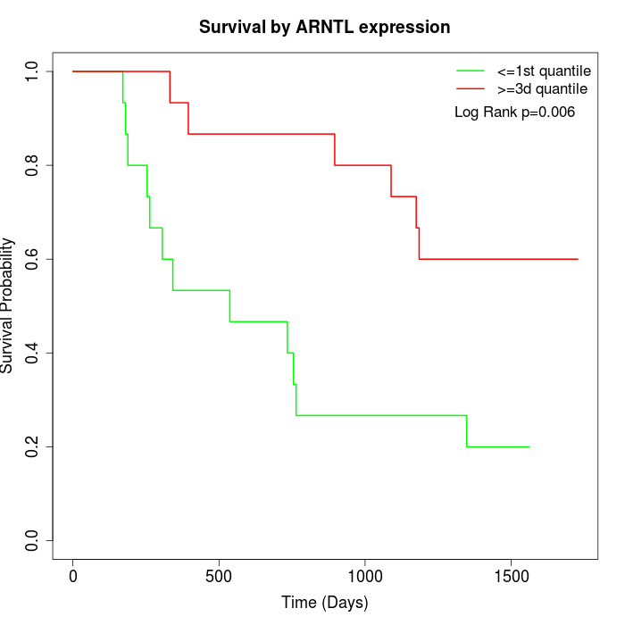 Survival by ARNTL expression: