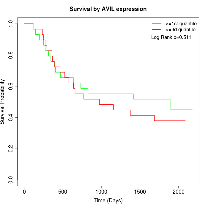 Survival by AVIL expression:
