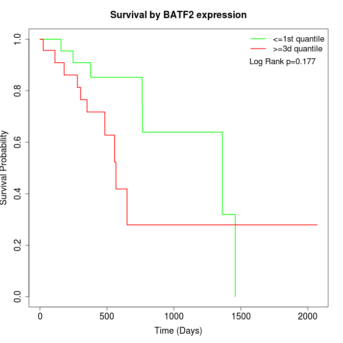 Survival by BATF2 expression:
