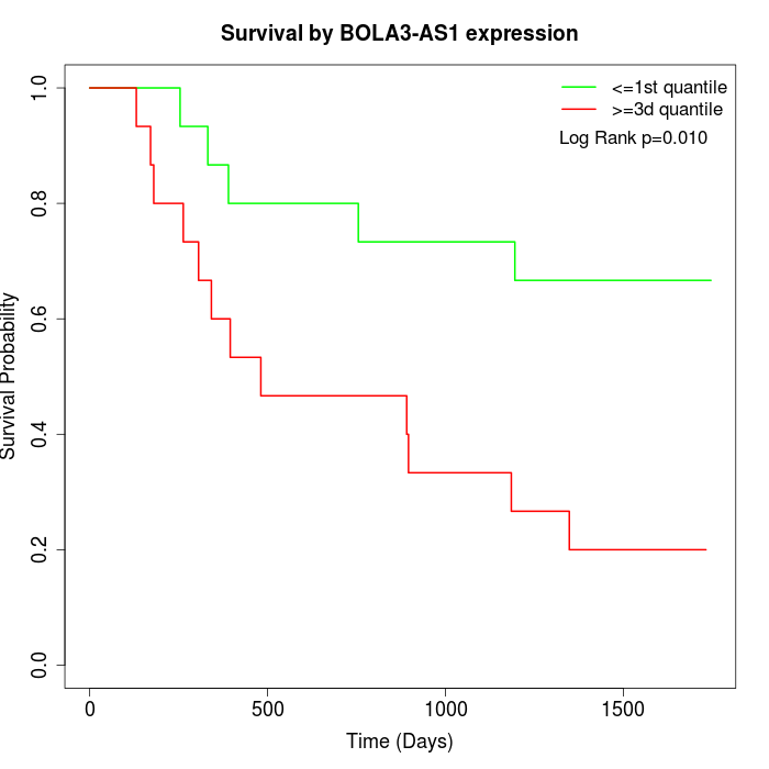 Survival by BOLA3-AS1 expression: