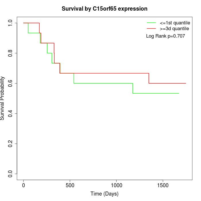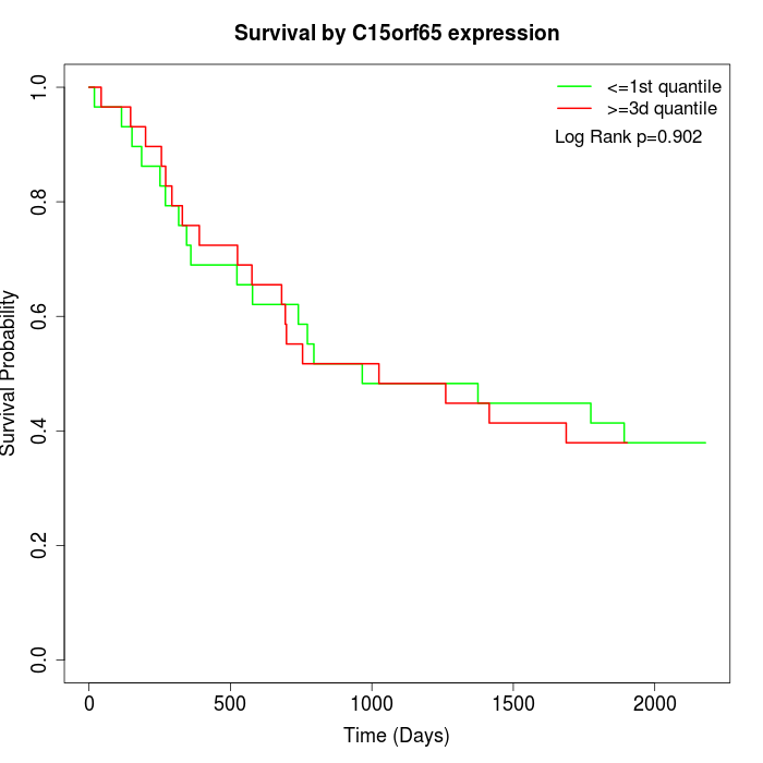 Survival by C15orf65 expression: