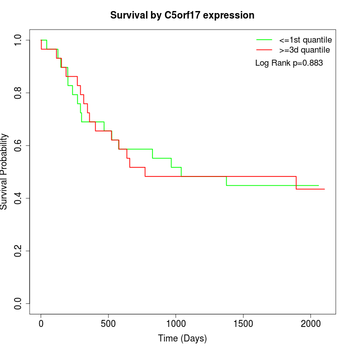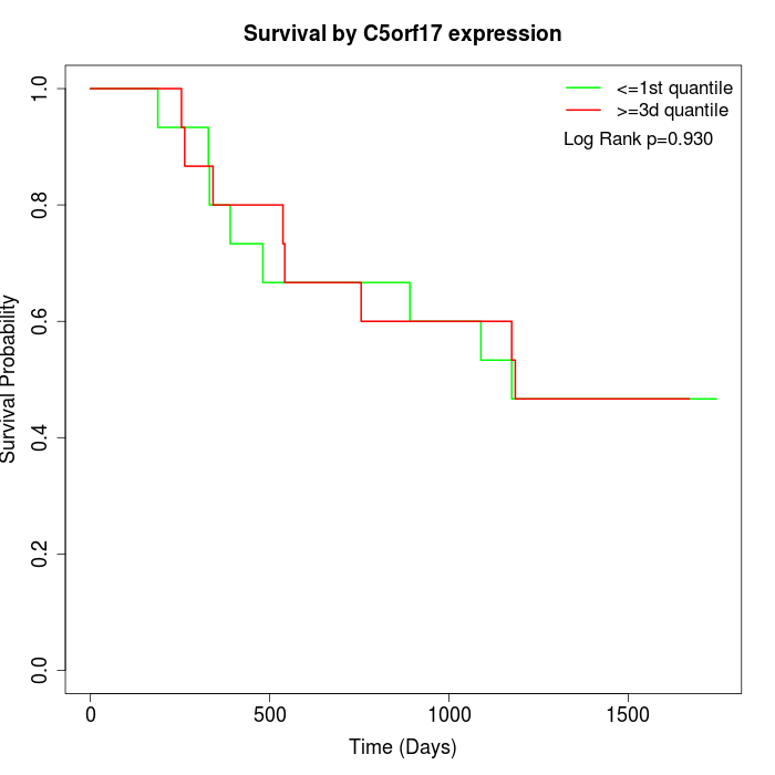 Survival by C5orf17 expression: