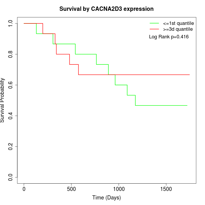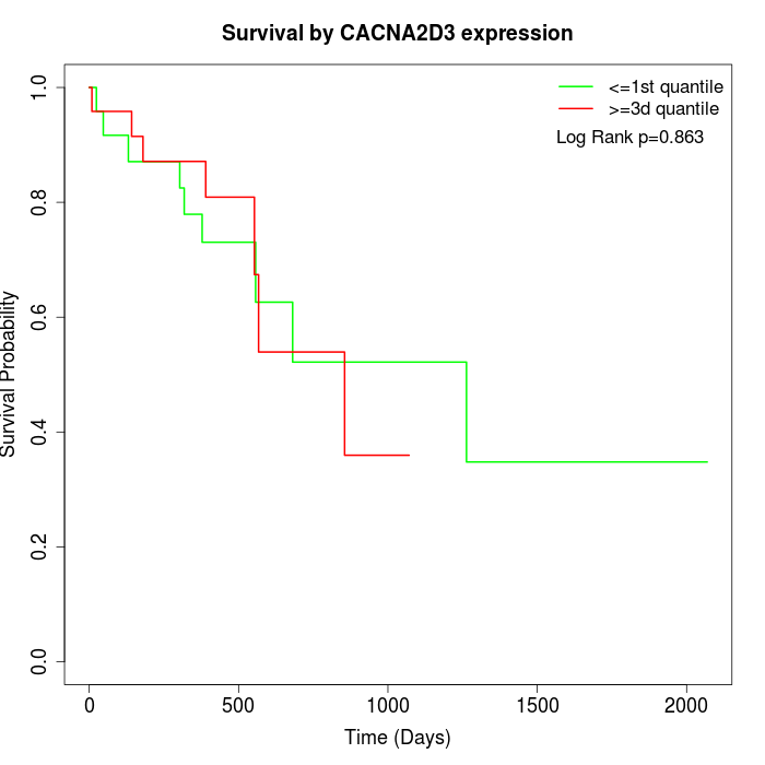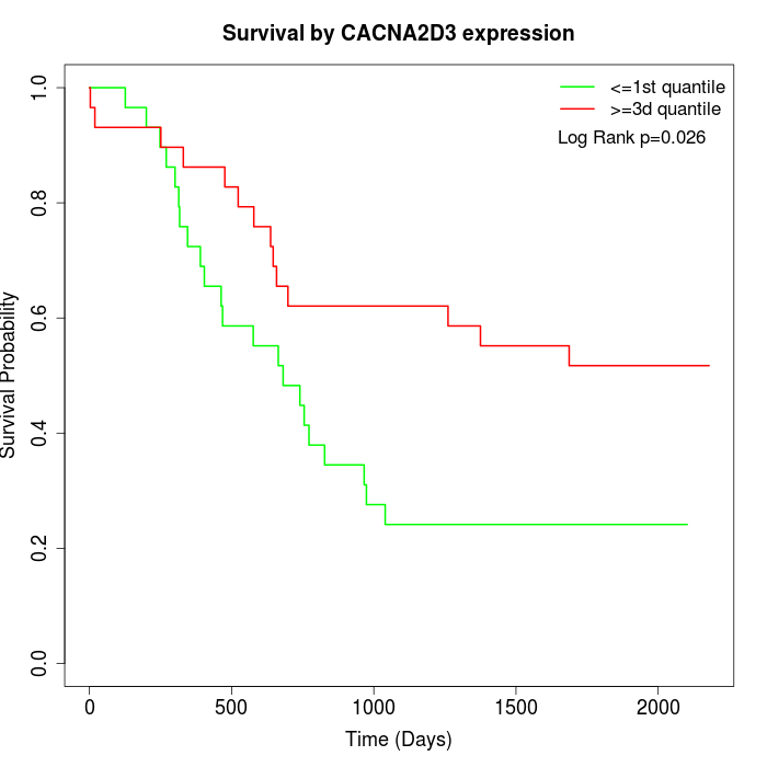 Survival by CACNA2D3 expression: