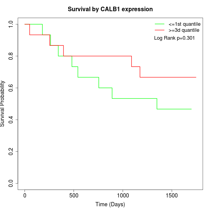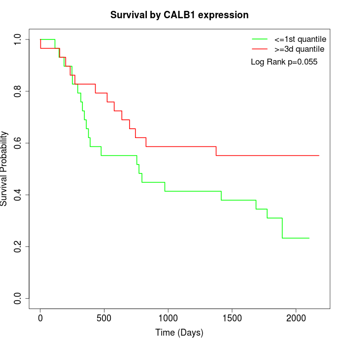 Survival by CALB1 expression: