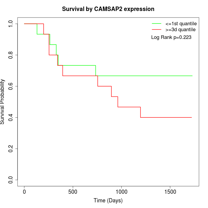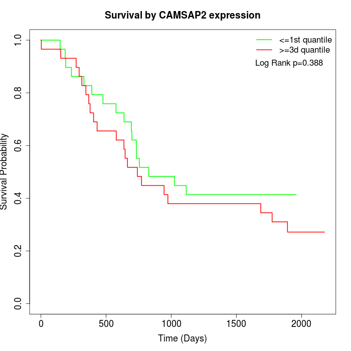 Survival by CAMSAP2 expression: