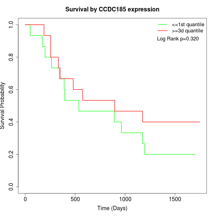 Survival by CCDC185 expression: