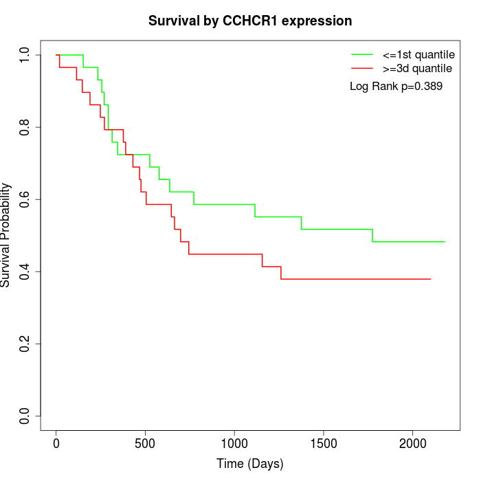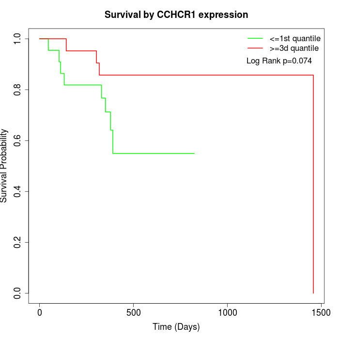 Survival by CCHCR1 expression: