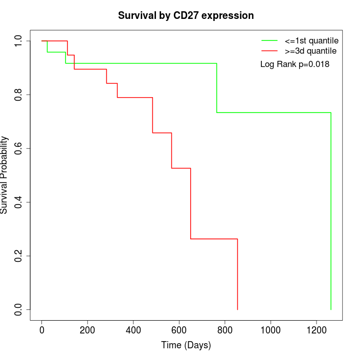 Survival by CD27 expression: