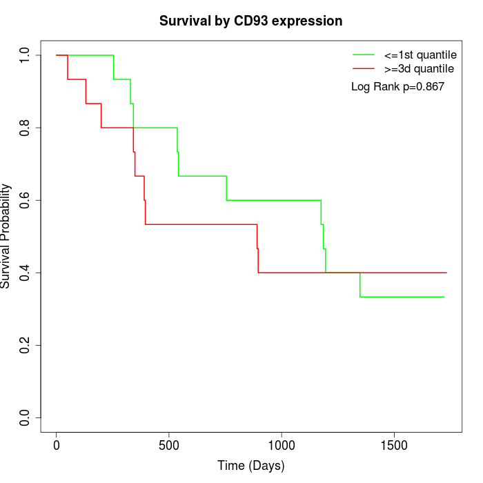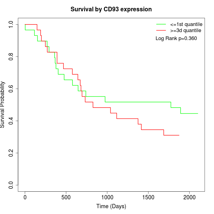 Survival by CD93 expression: