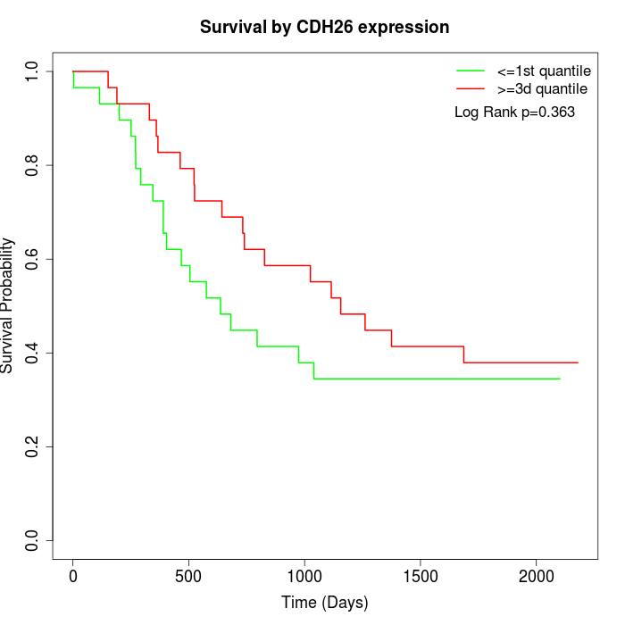 Survival by CDH26 expression: