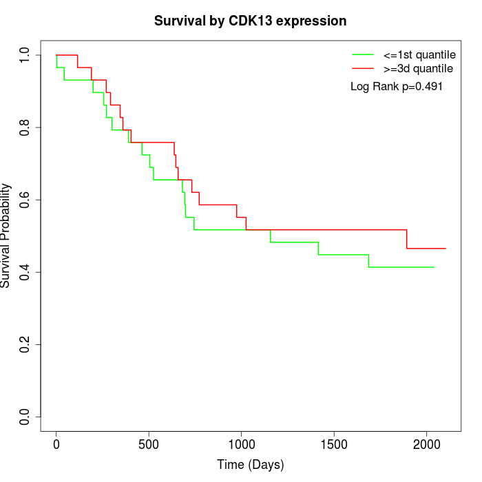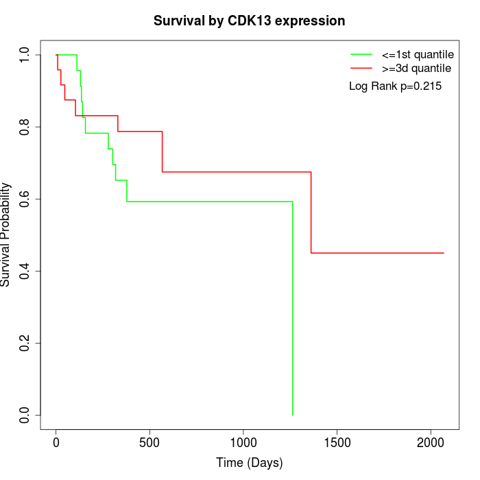 Survival by CDK13 expression:
