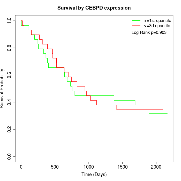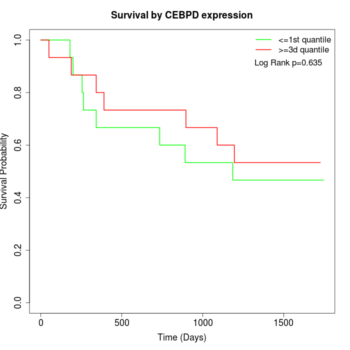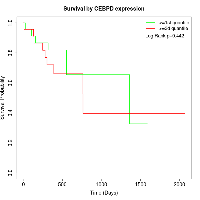 Survival by CEBPD expression: