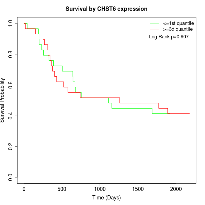 Survival by CHST6 expression: