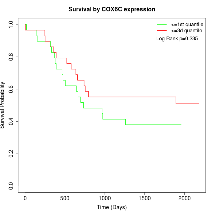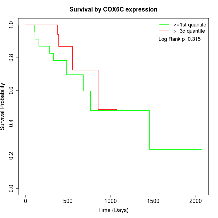 Survival by COX6C expression: