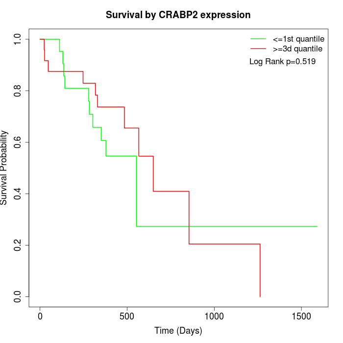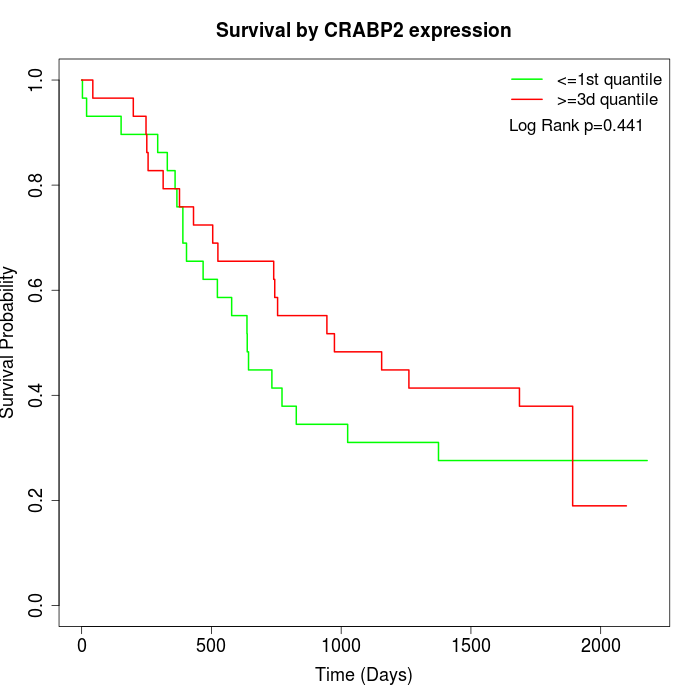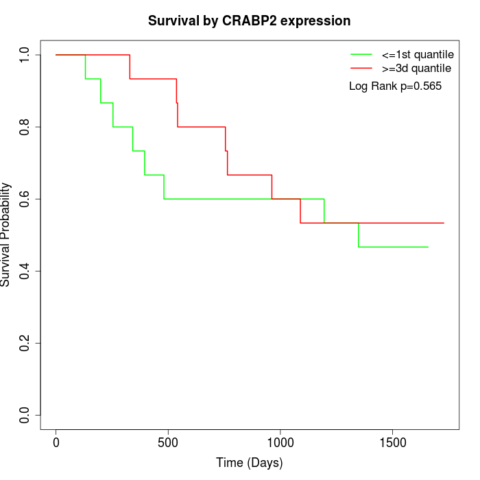 Survival by CRABP2 expression: