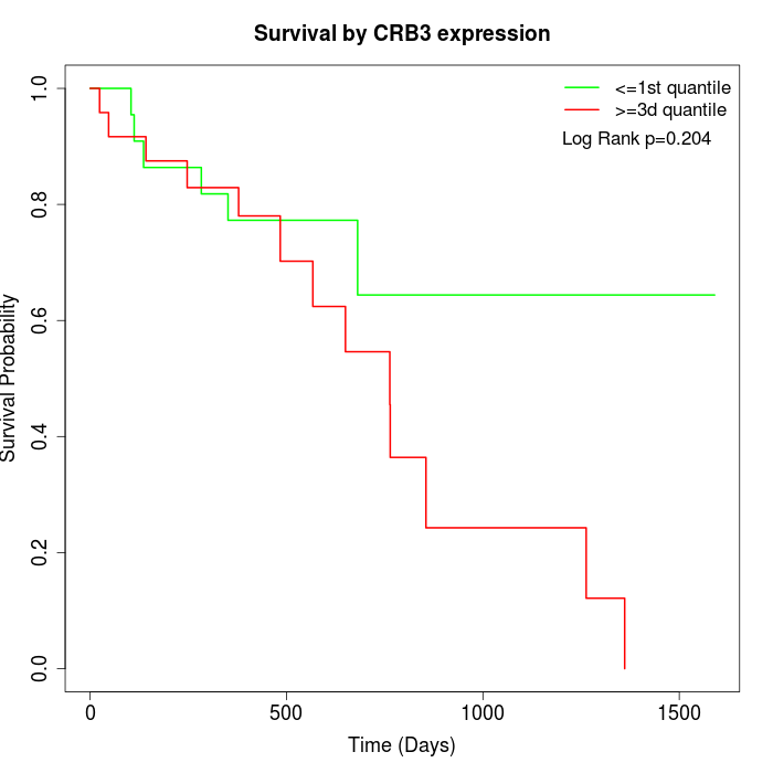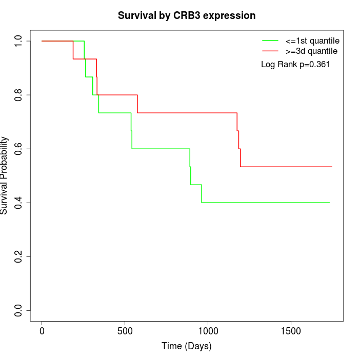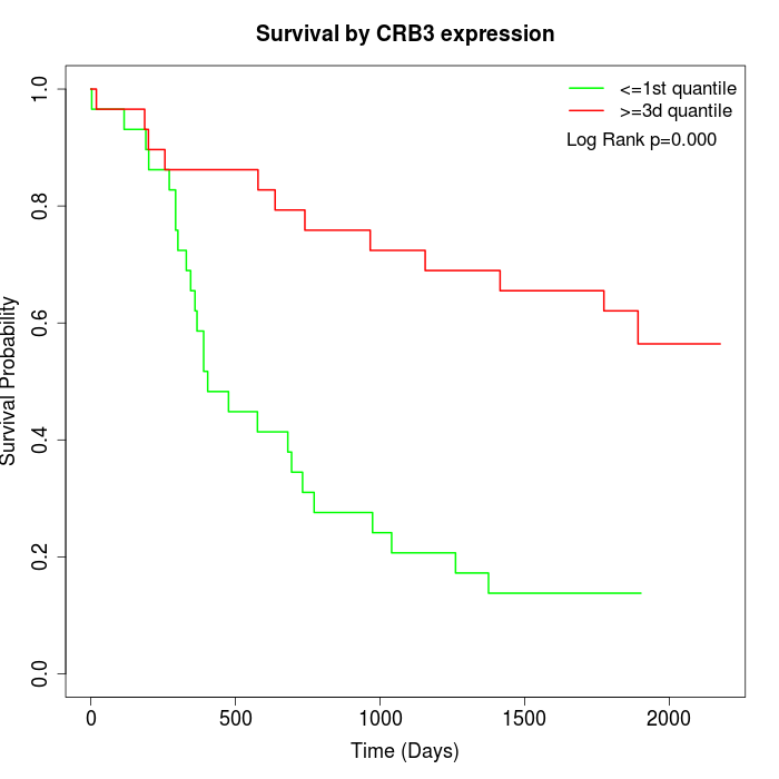 Survival by CRB3 expression: