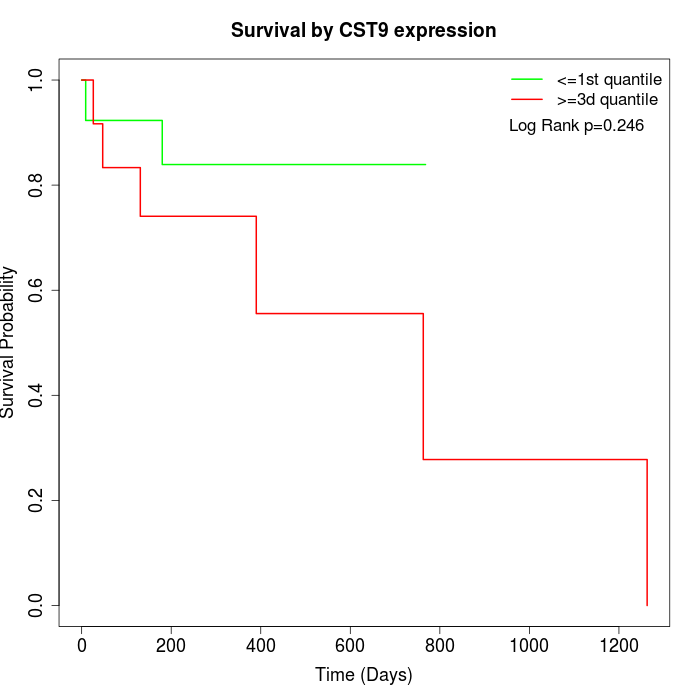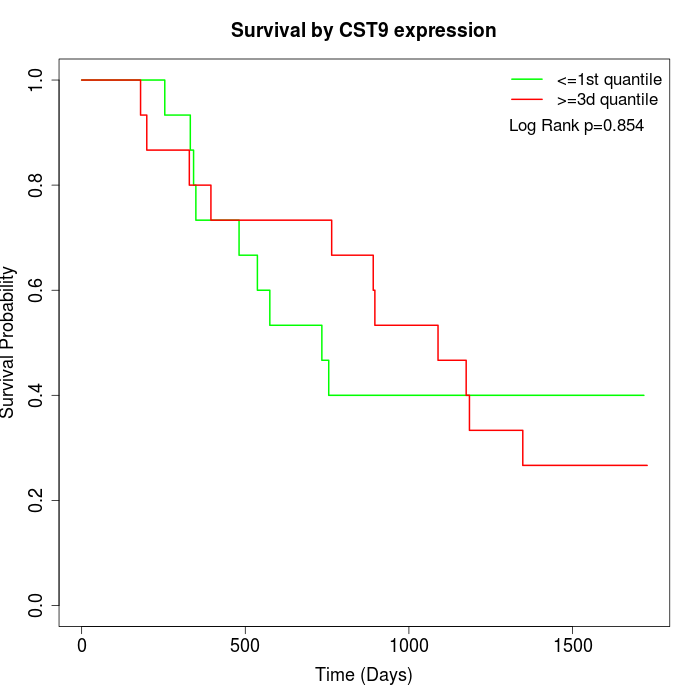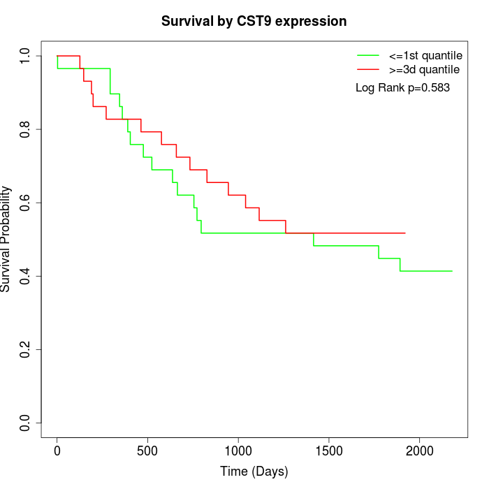 | TCGA | CST9 | 128822 | RNAseq | -0.1135 | 0.9130 |