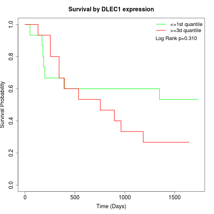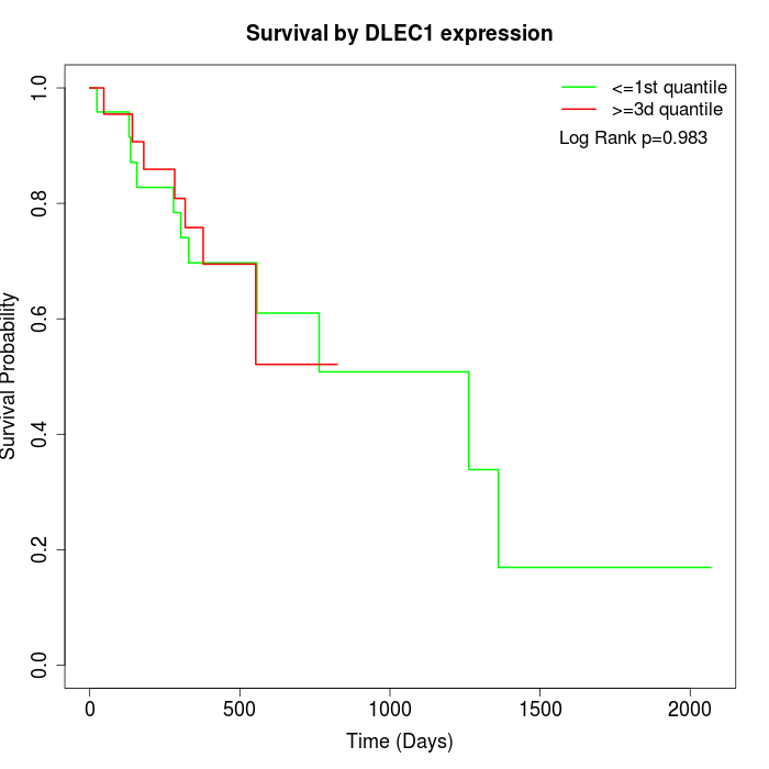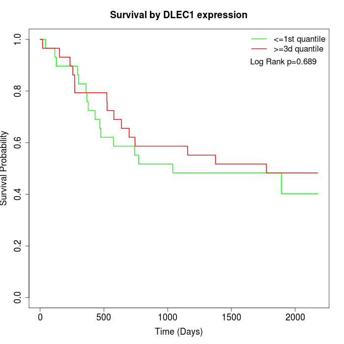 Survival by DLEC1 expression: