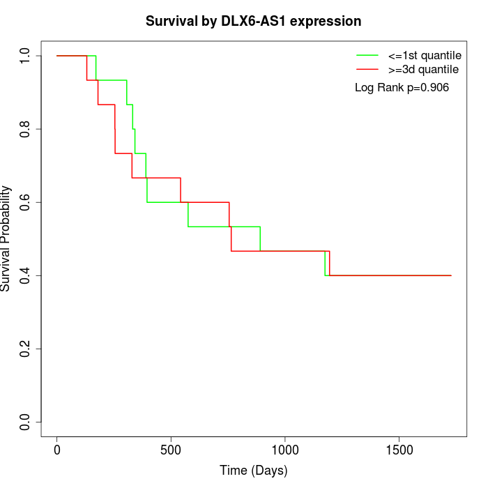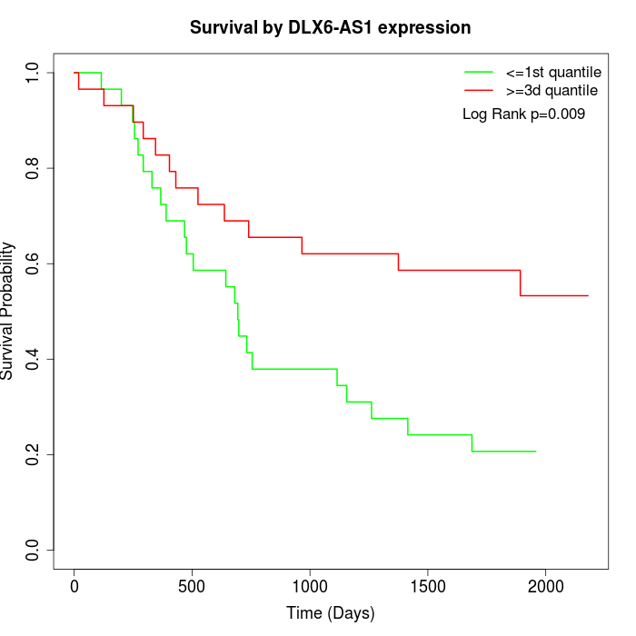 Survival by DLX6-AS1 expression: