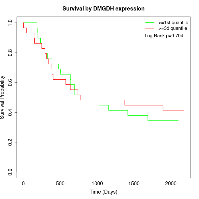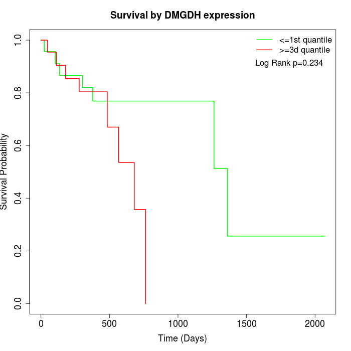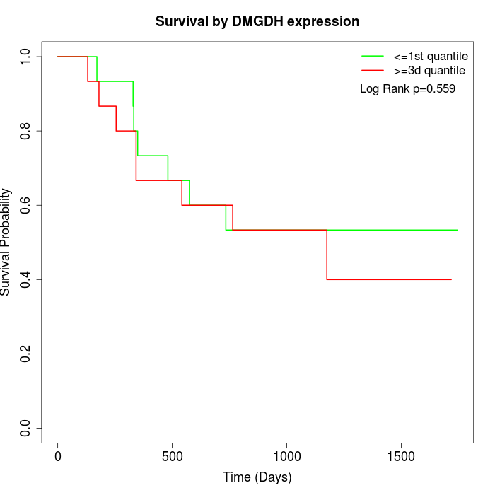 Survival by DMGDH expression: