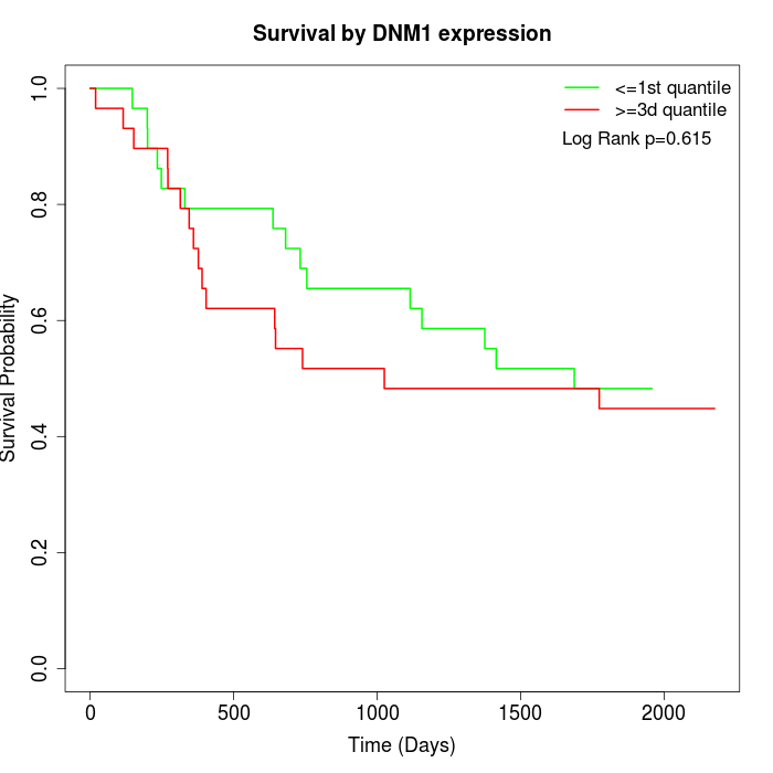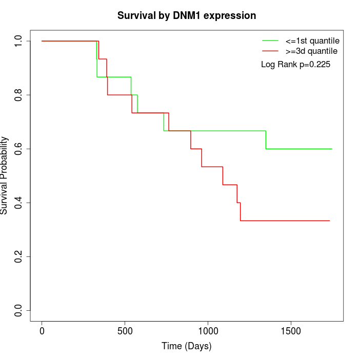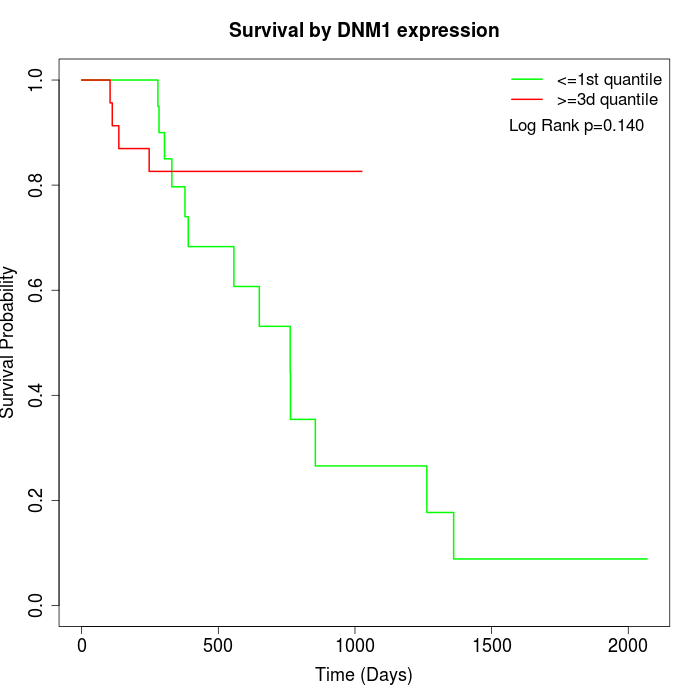 Survival by DNM1 expression: