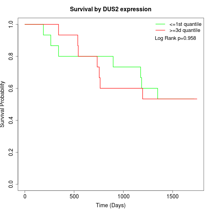 Survival by DUS2 expression: