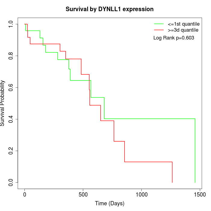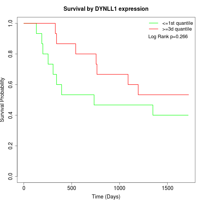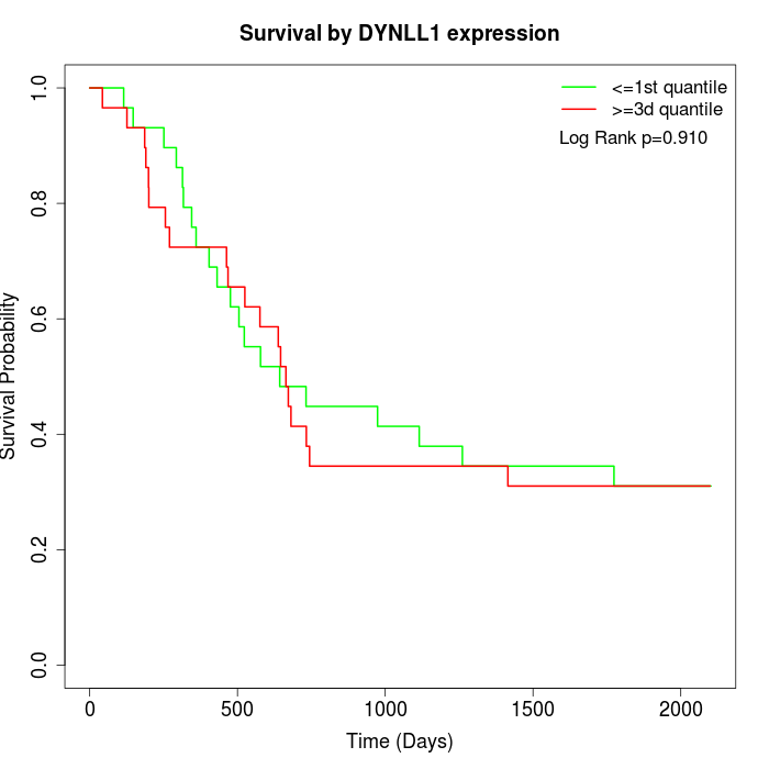 Survival by DYNLL1 expression: