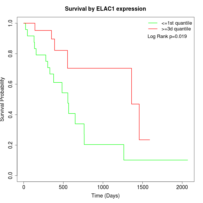 Survival by ELAC1 expression: