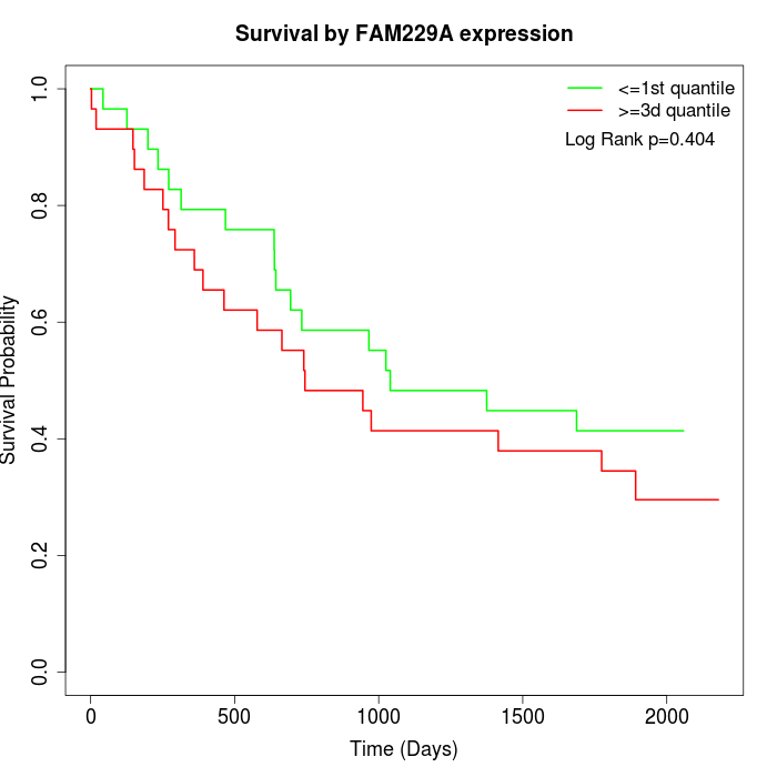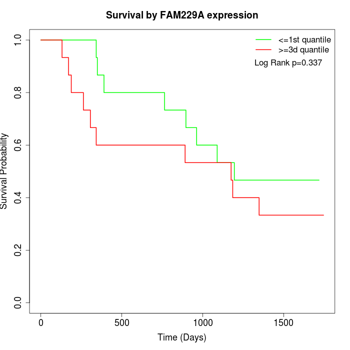 Survival by FAM229A expression: