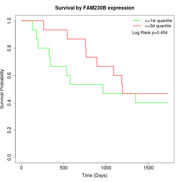 Survival by FAM230B expression: