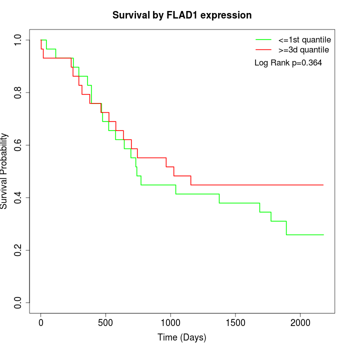 Survival by FLAD1 expression: