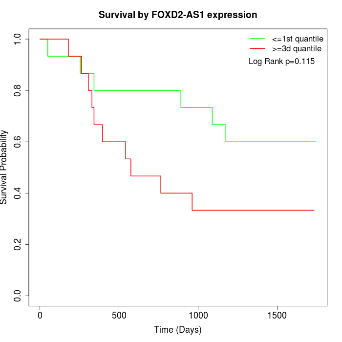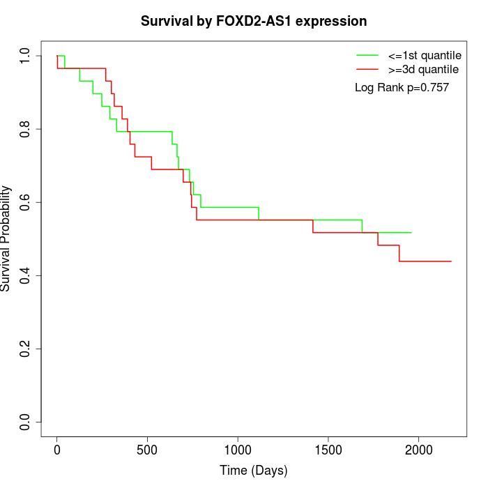 Survival by FOXD2-AS1 expression: