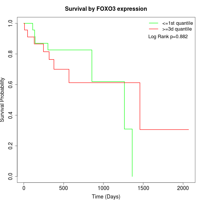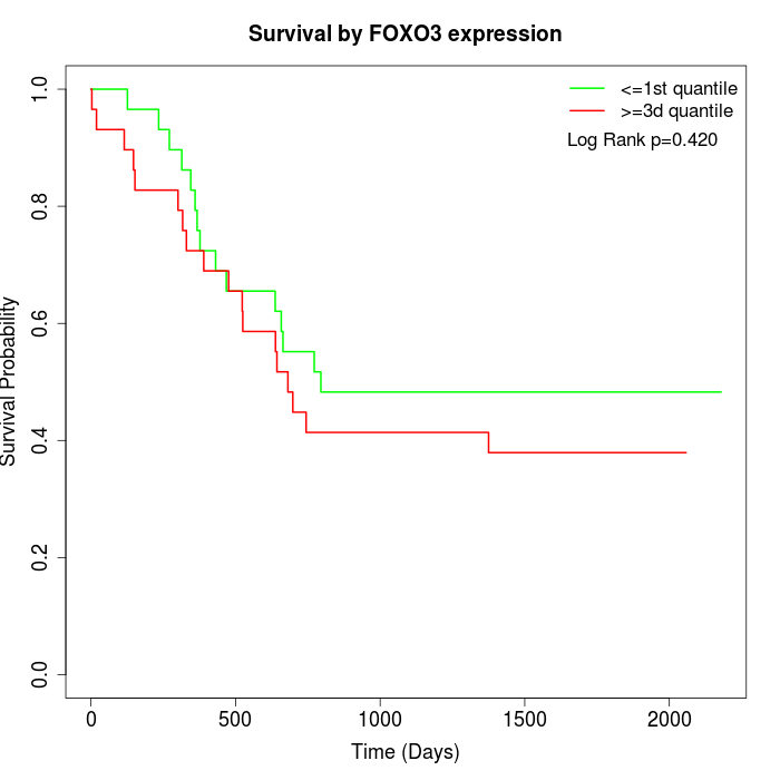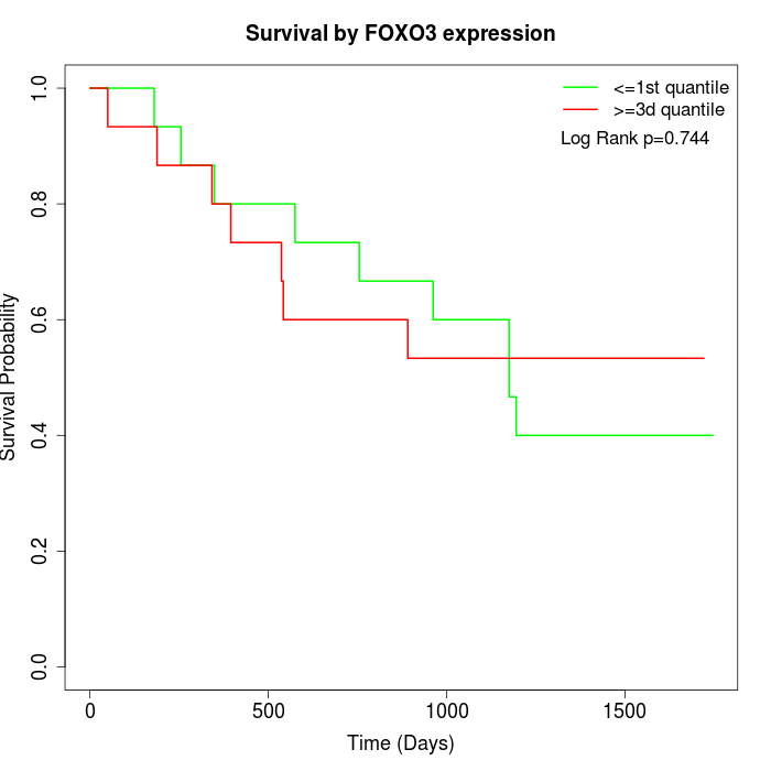 Survival by FOXO3 expression: