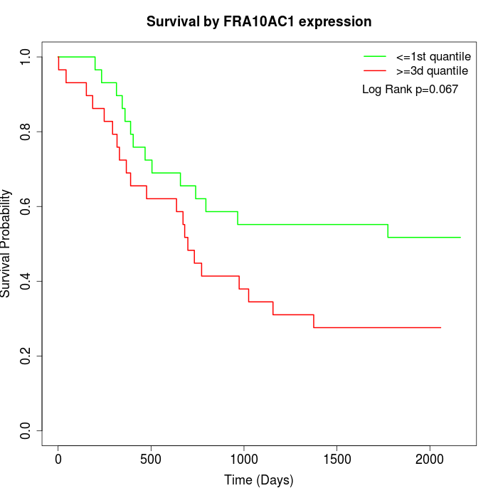 Survival by FRA10AC1 expression: