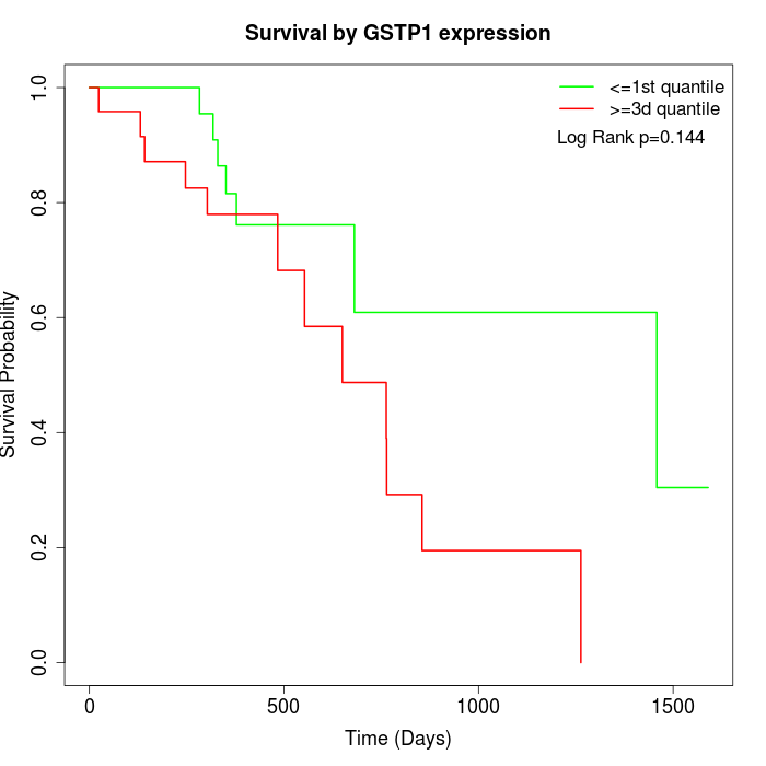 Survival by GSTP1 expression: