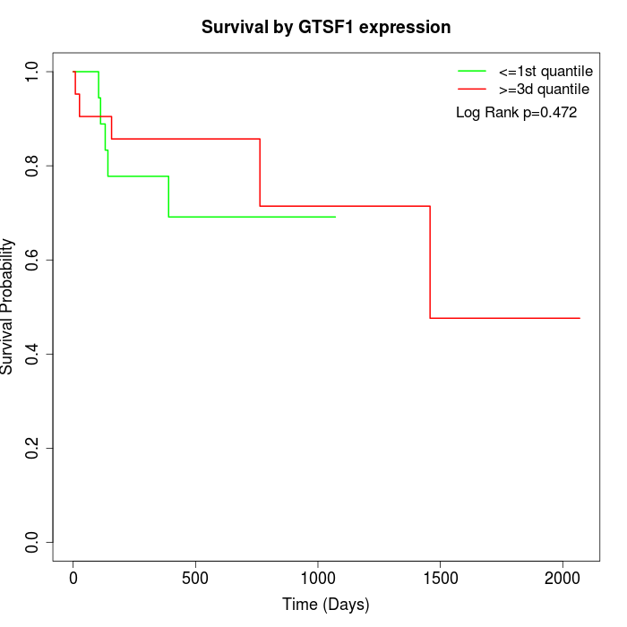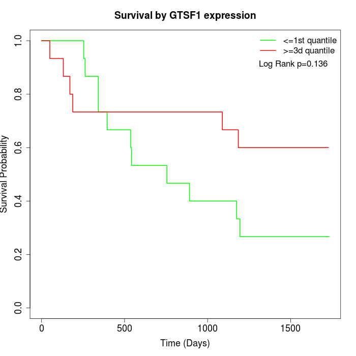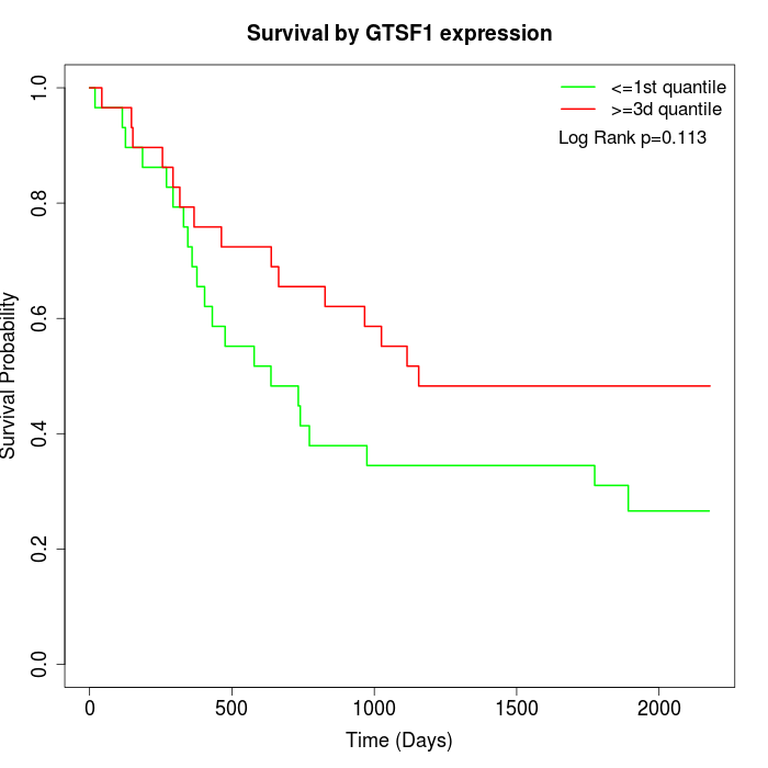 Survival by GTSF1 expression:
