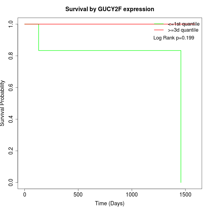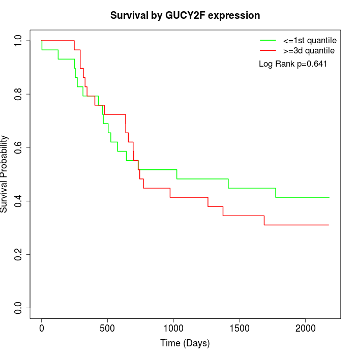 Survival by GUCY2F expression: