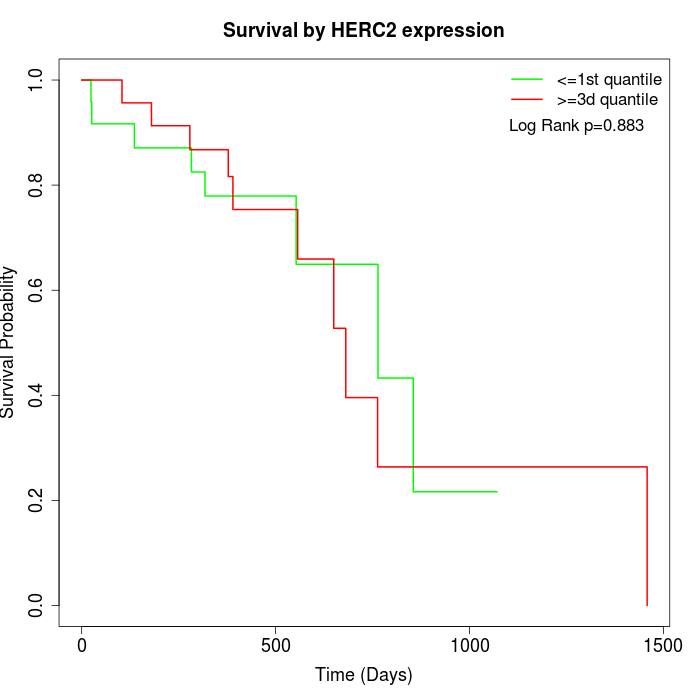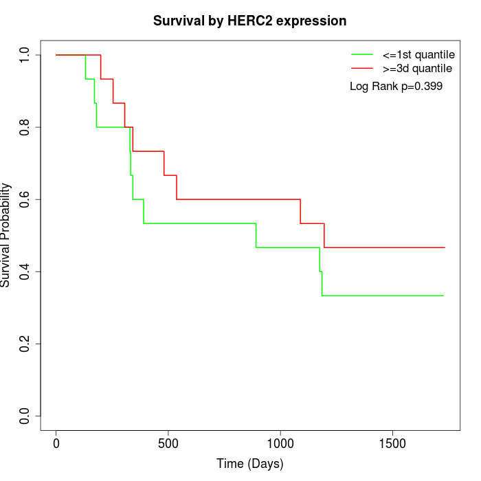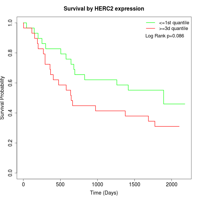 Survival by HERC2 expression: