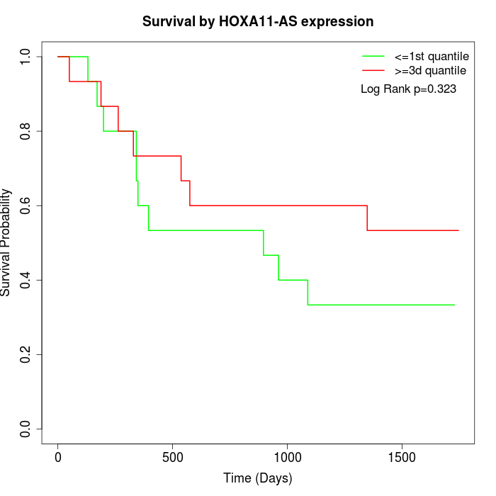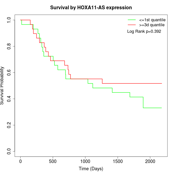 Survival by HOXA11-AS expression: