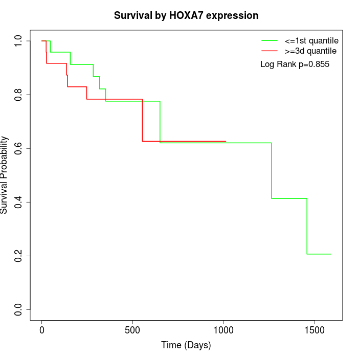 Survival by HOXA7 expression: