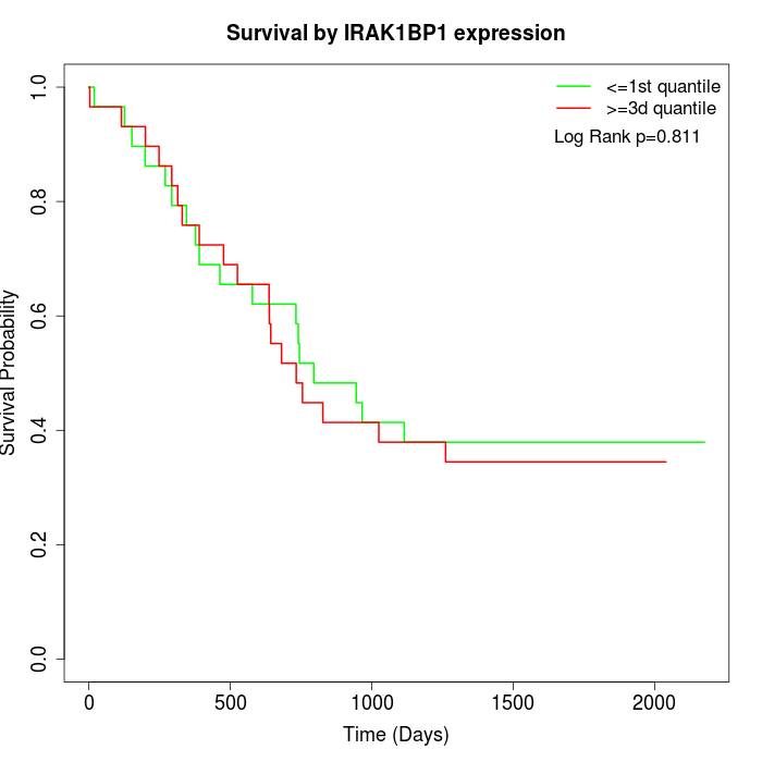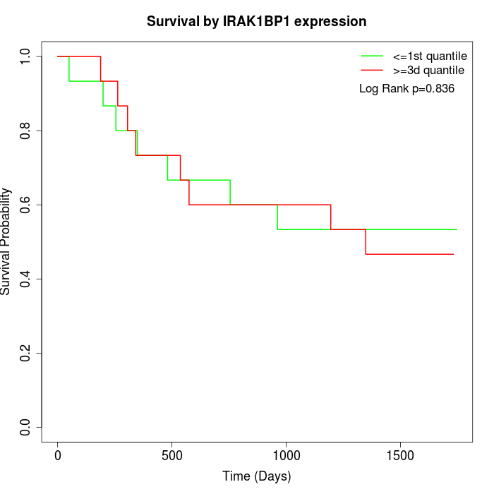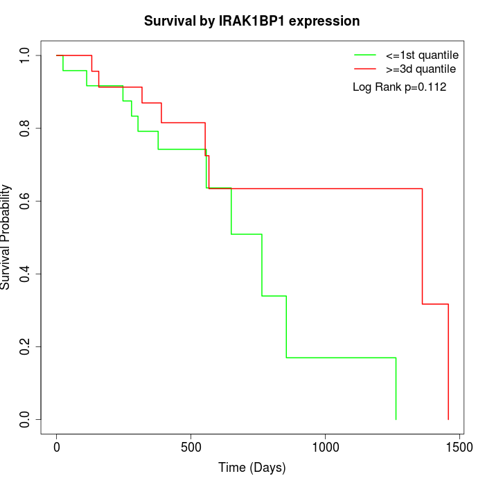 Survival by IRAK1BP1 expression: