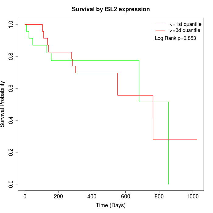 Survival by ISL2 expression: