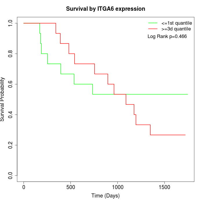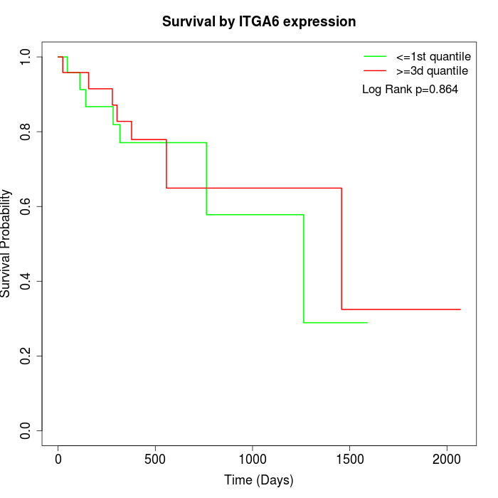 Survival by ITGA6 expression: