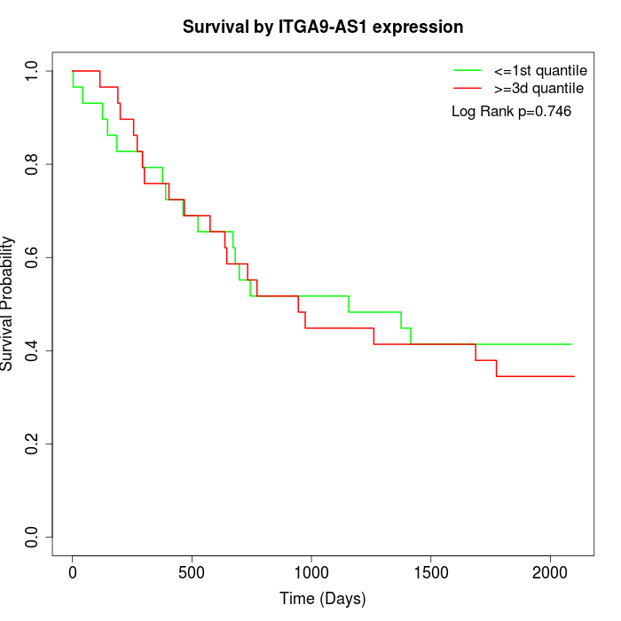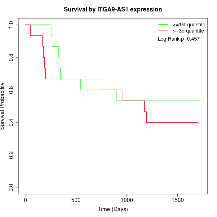 Survival by ITGA9-AS1 expression: